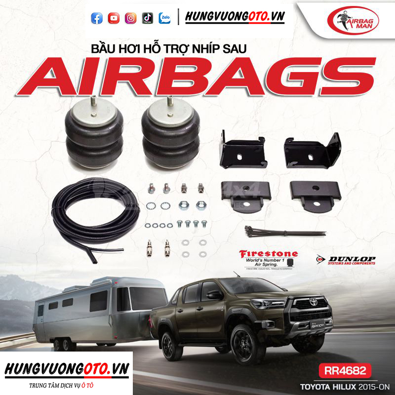 Bầu hơi Airbag Man RR4682 được thiết kế dành riêng cho dòng xe Bán tải Toyota Hilux (2015-2023) với các công dụng