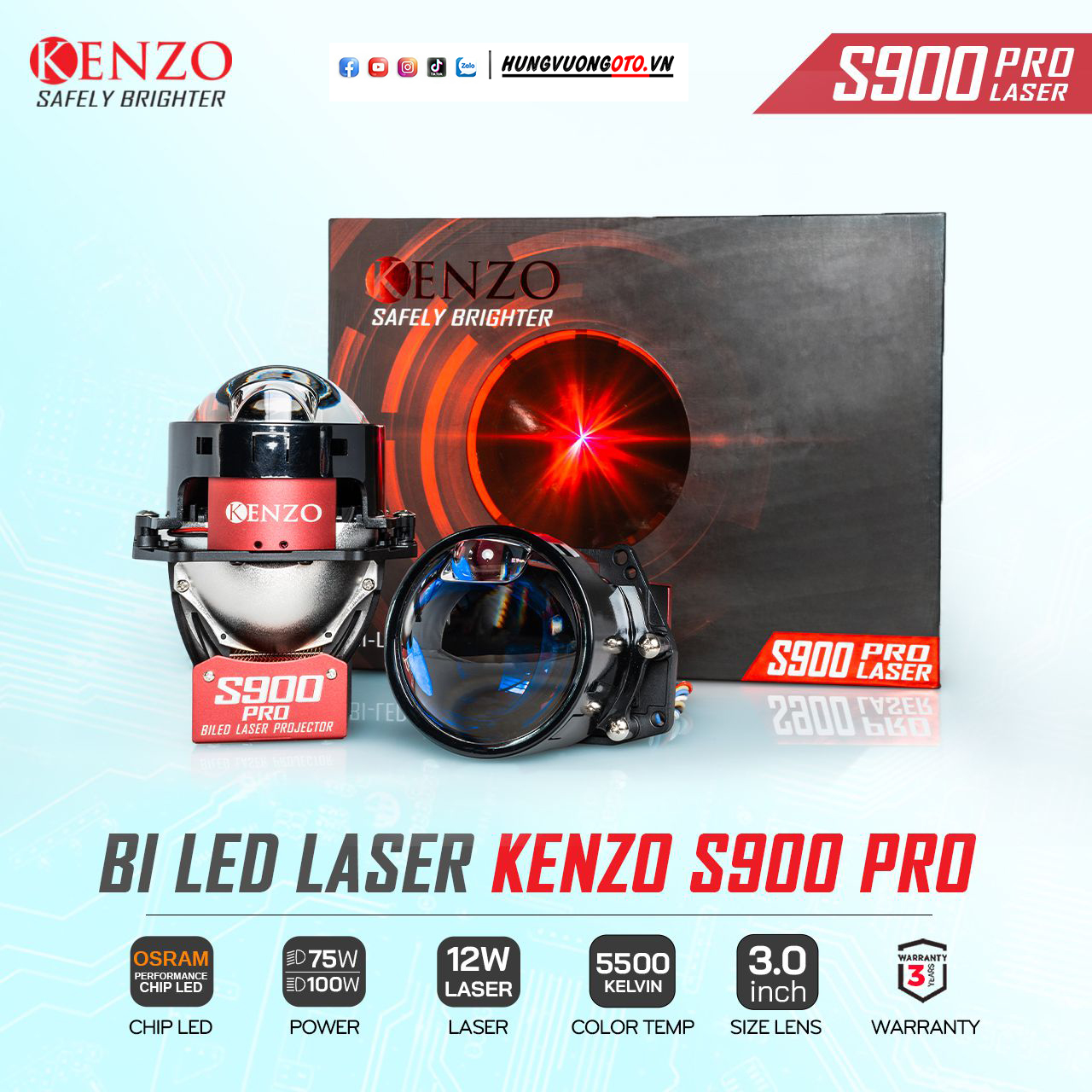 “Từ những đường nét tinh xảo được chế tác tỉ mỉ, đến những công nghệ thượng hạng được Kenzo nghiên cứu và phát triển kỹ lưỡng” – Bi Led Laser Kenzo S900 Pro – Bom tấn đầu năm 2024 đã chính thức ra mắt. “Sáng hơn” – “Xa hơn” và hơn thế nữa, S900 Pro Laser thể hiện sự đẳng cấp, tinh tế và sang trọng cho những người sở hữu.